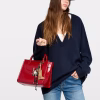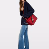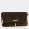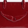 Small bag in crumpled leather with double handles, shoulder strap and embossed wings signature.