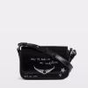 Hobo bag in suede leather with adjustable handle and embossed wings signature.