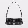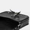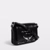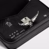 Small patent leather bag with vintage effect and graffiti print, with adjustable strap and signature wings.