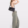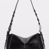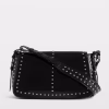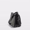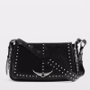 Small vintage-effect patent leather bag with studs, adjustable shoulder strap and signature wings.