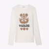 Round neck sweater with intarsia at the front.
