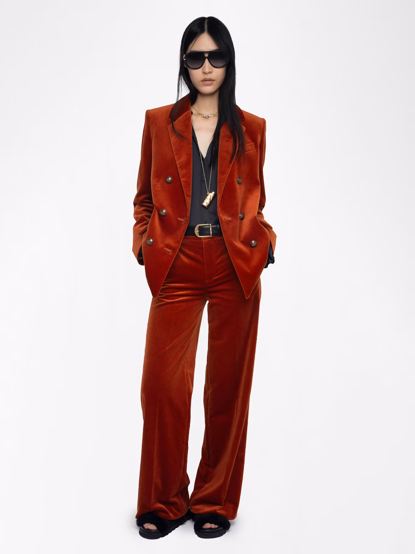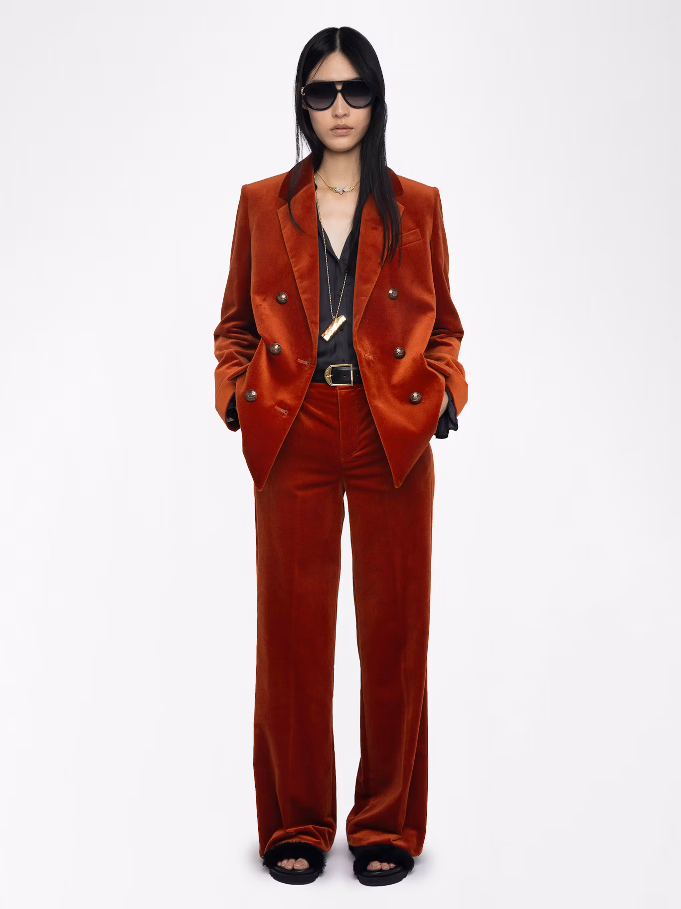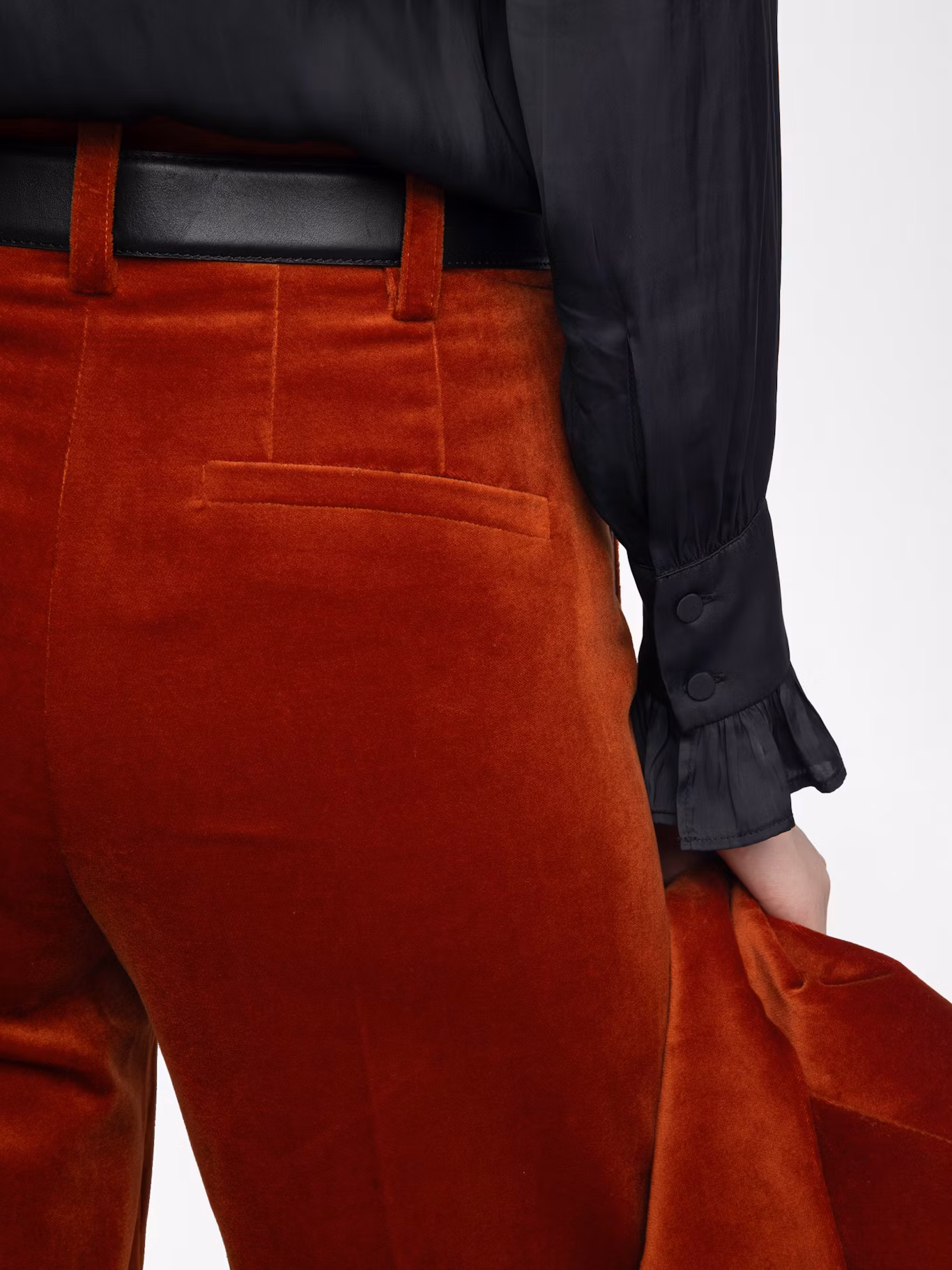 Pantalon tailleur droit ample en velours.