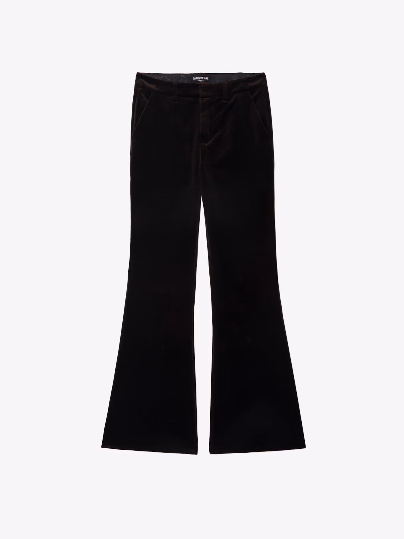 Tailored pants in smooth velvet, low waist, flared and multi-pockets.