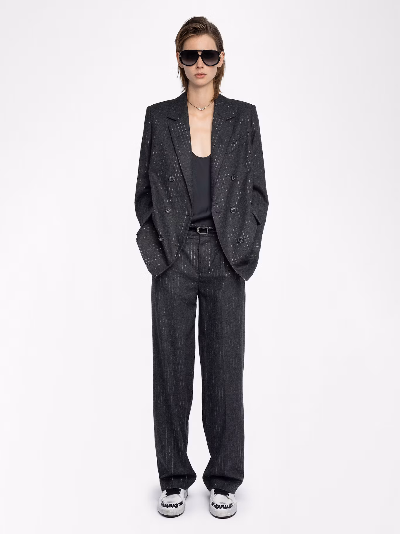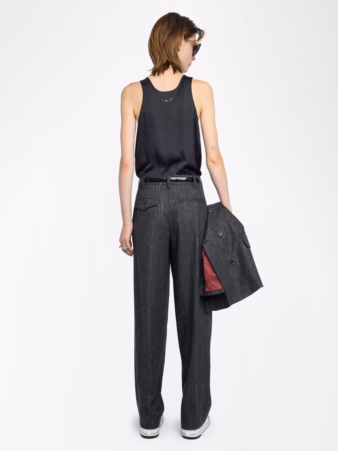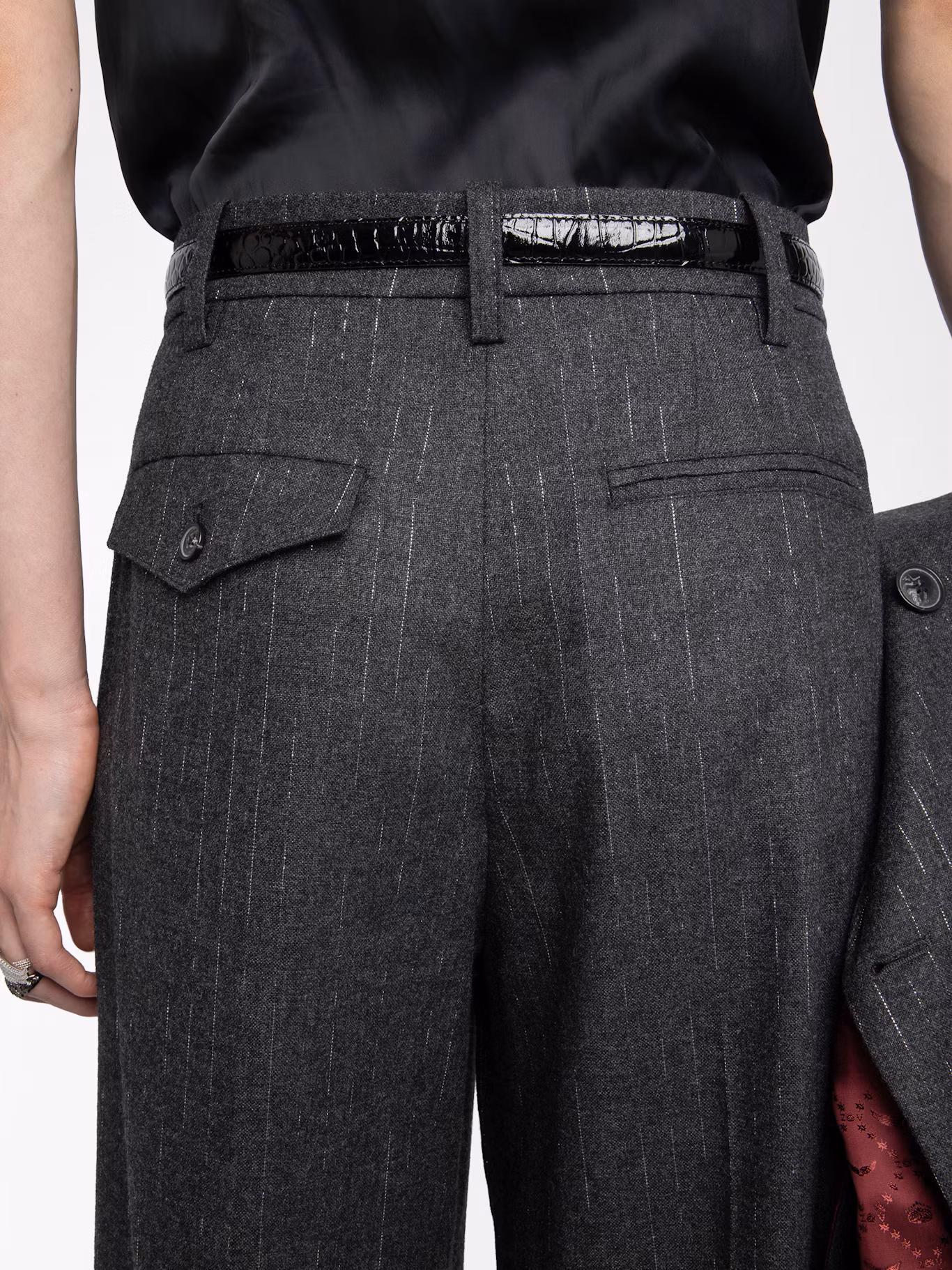 Straight pants in flannel with shimmer stripes.