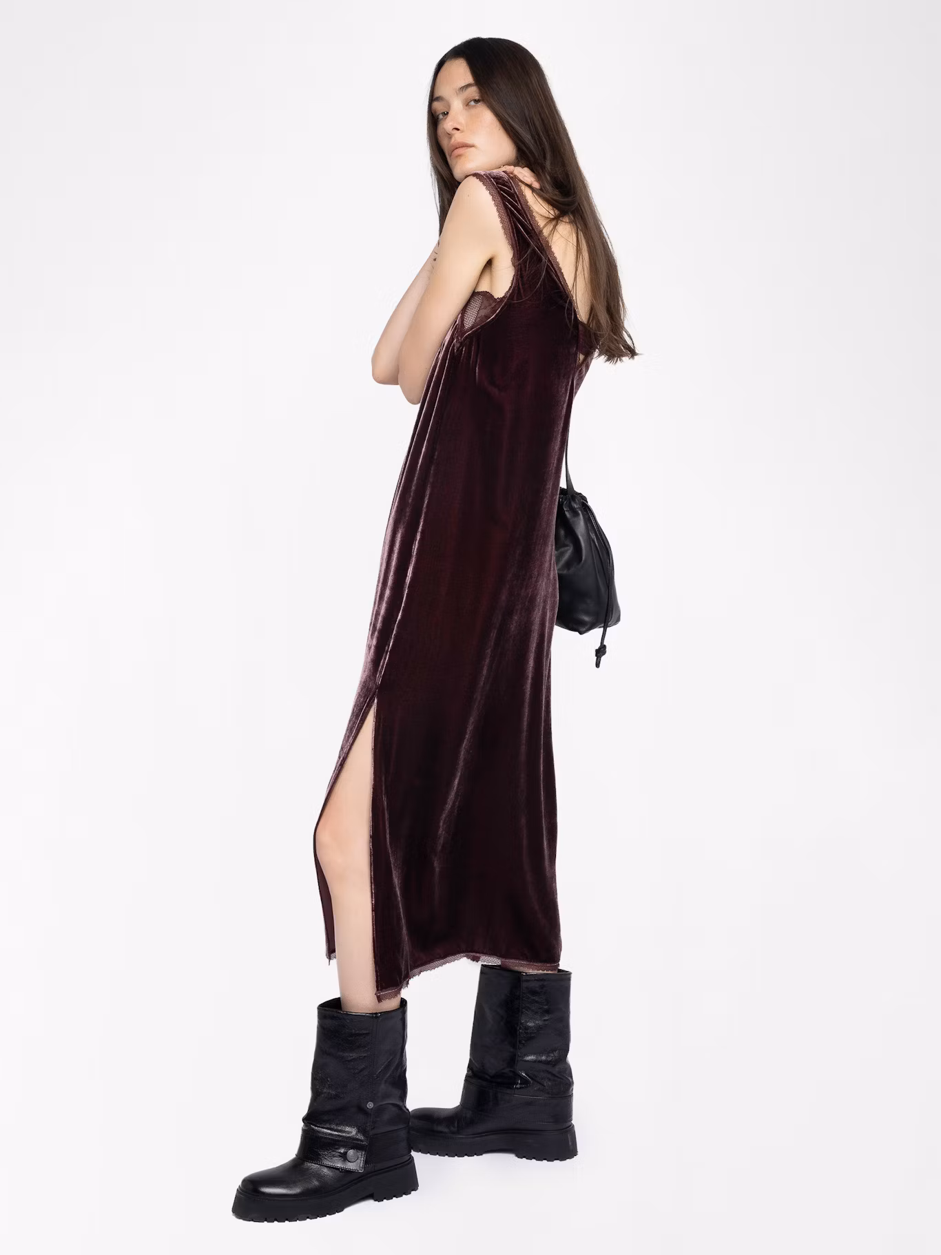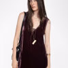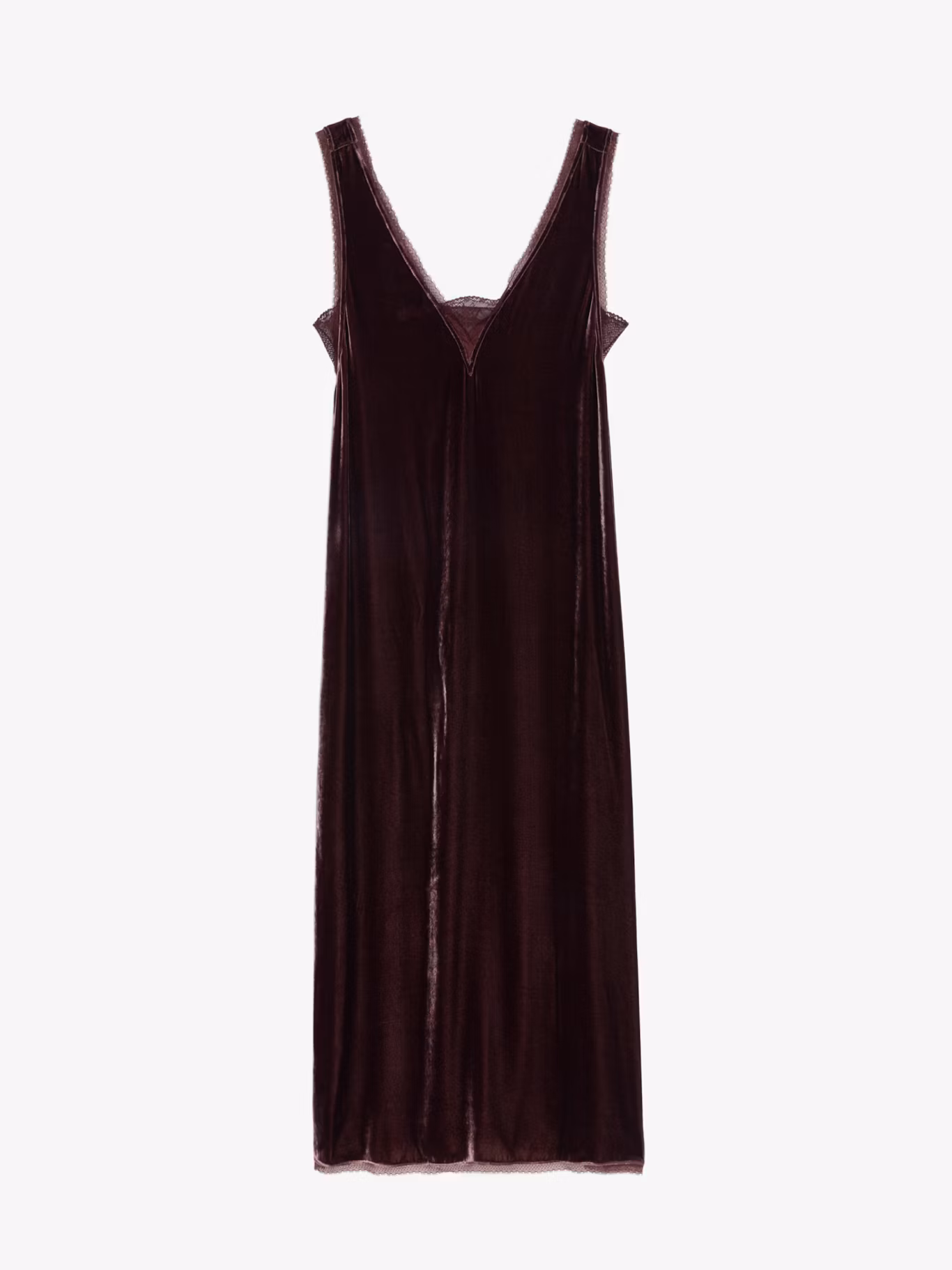 Long dress in plain velvet, lingerie spirit and French lace.