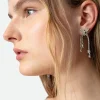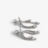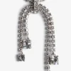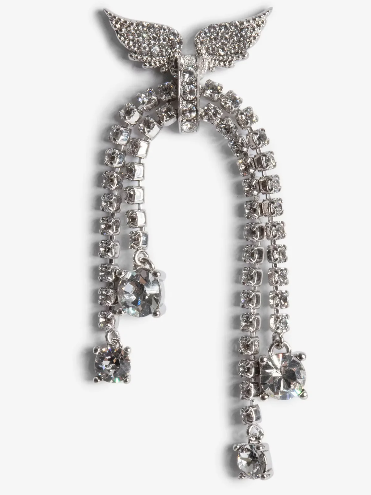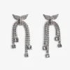 Silver-tone brass drop earrings with diamanté wings and tassels.