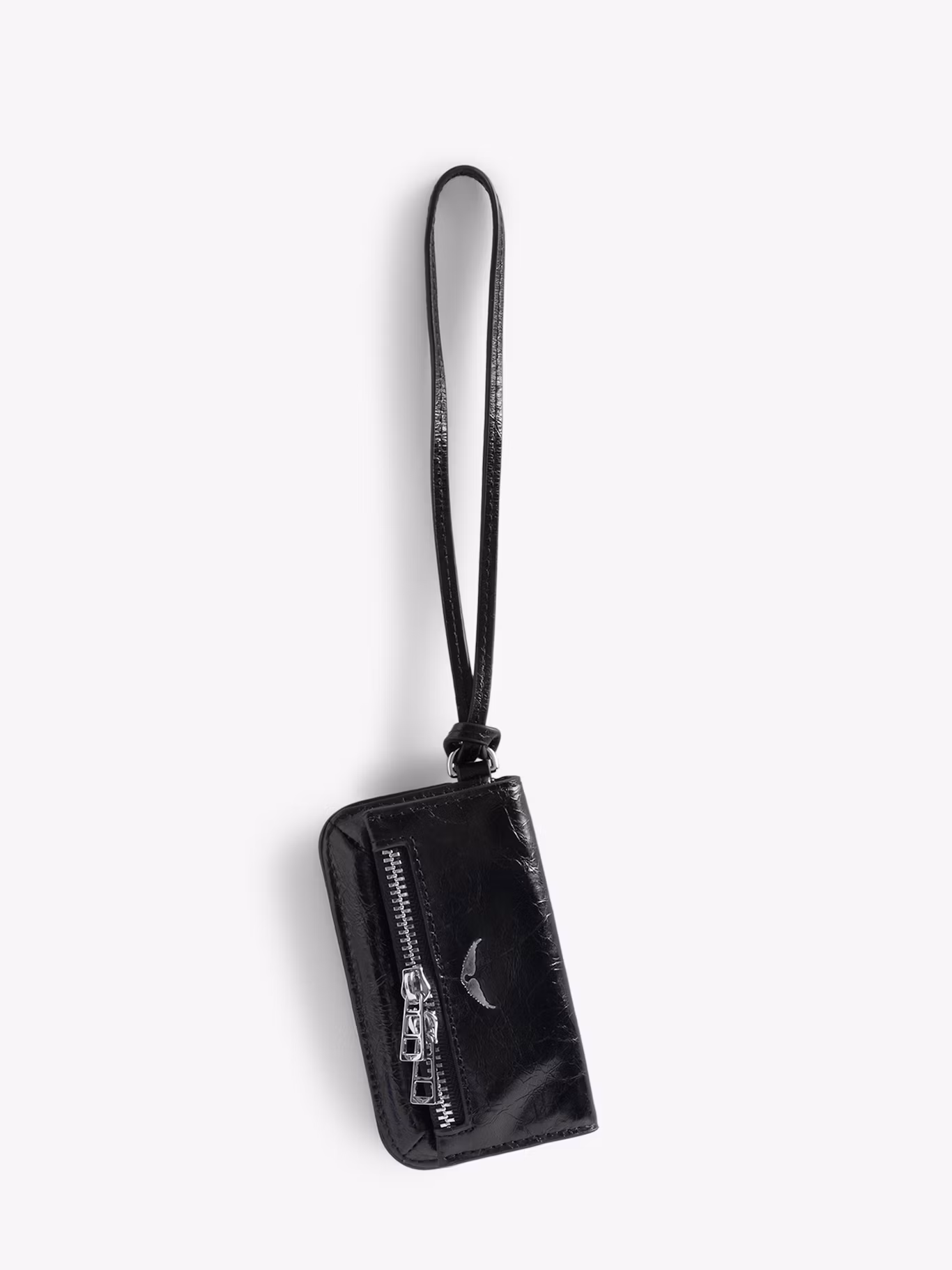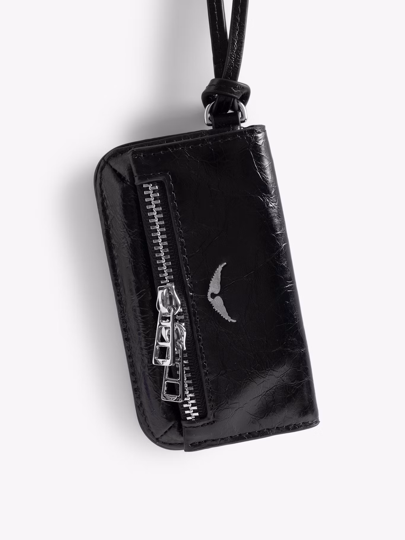 Grigri mini rock pouch in vintage leather with zip pocket, internal pocket and interior mirror.