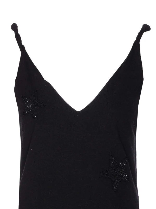 Zadigvoltaire black stella dress, v neck, strass stars allover, twisted strap