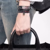 Bracelet en cuir vernis effet vintage double tour avec un charm médaillon et tags.