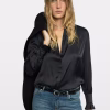 Flowing black Japanese satin shirt for women