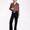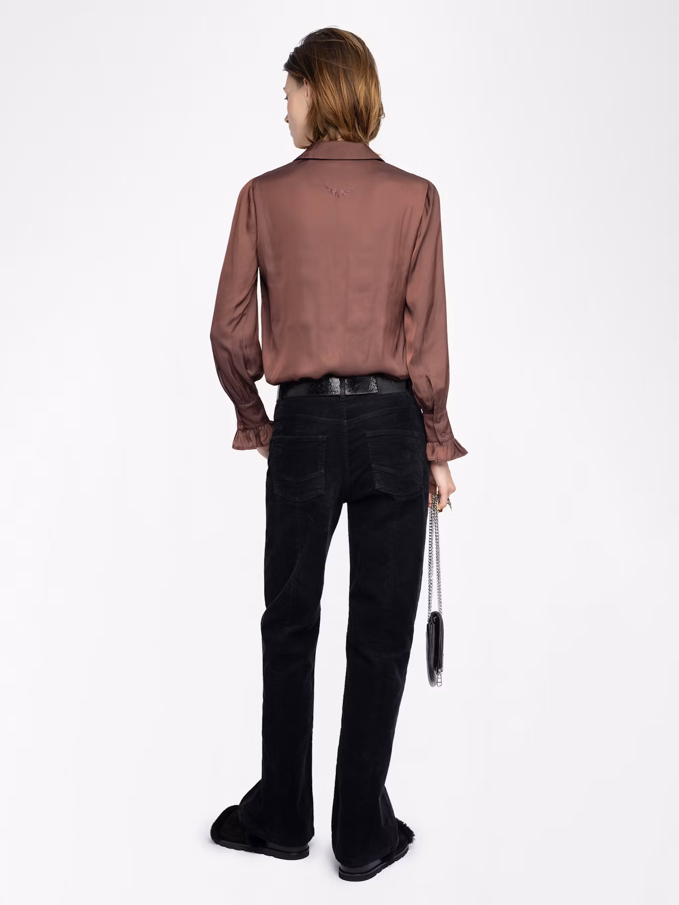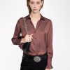 Satin shirt, long sleeves, button closure and wing rhinestones on the back.