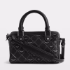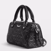 Coated canvas monogram-print bag with adjustable shoulder strap and grained leather handle.
